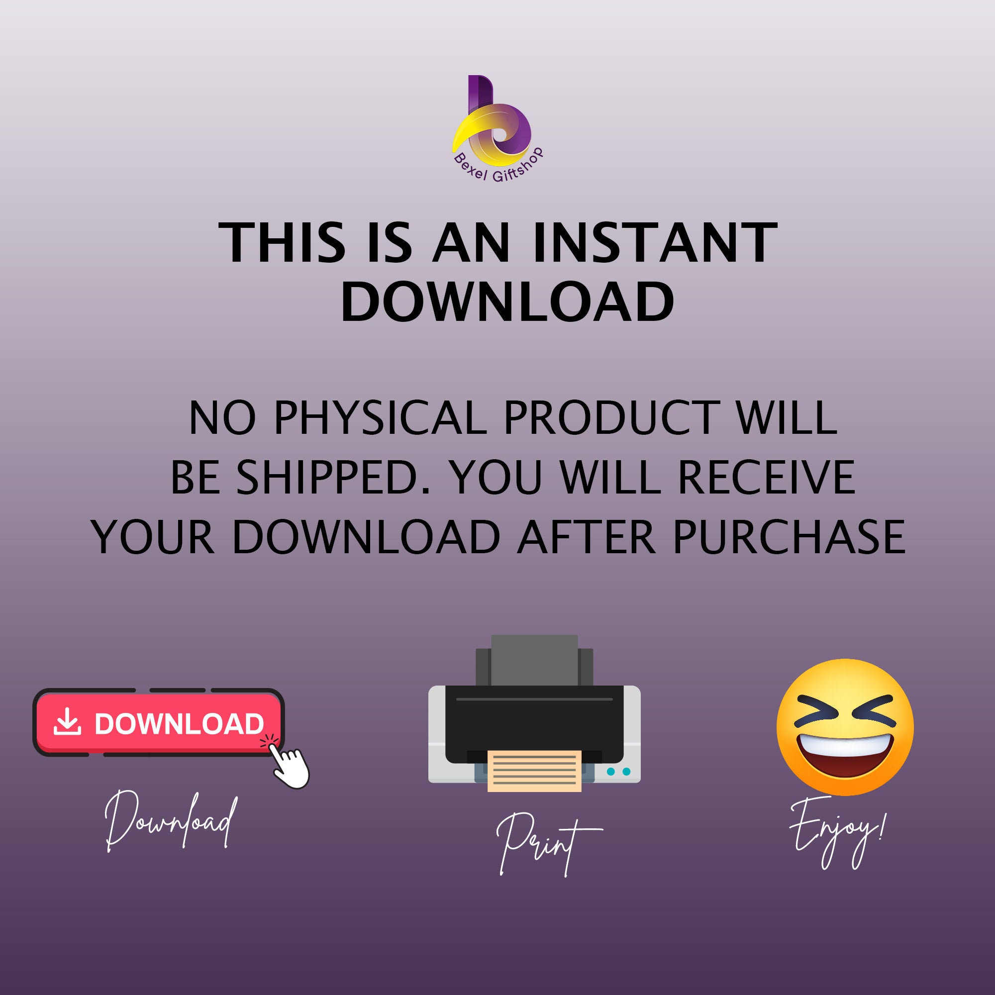 All our files are ready to be printed. Please be sure to choose the file that suits your printer (Either A4 or Letter). Printer sizes are generally geographically determined.