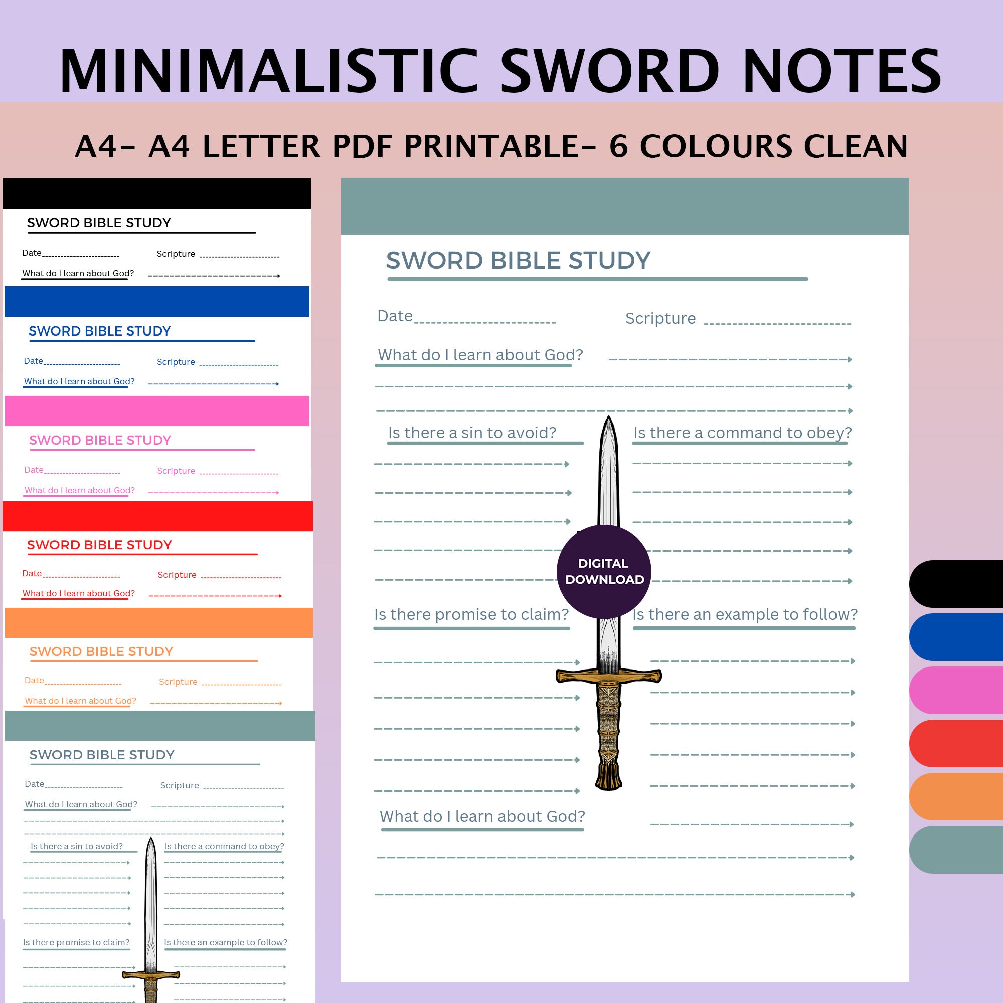 ➭ Print Ready A4 Sword Bible study Notes (6 Different colours) [PDF]